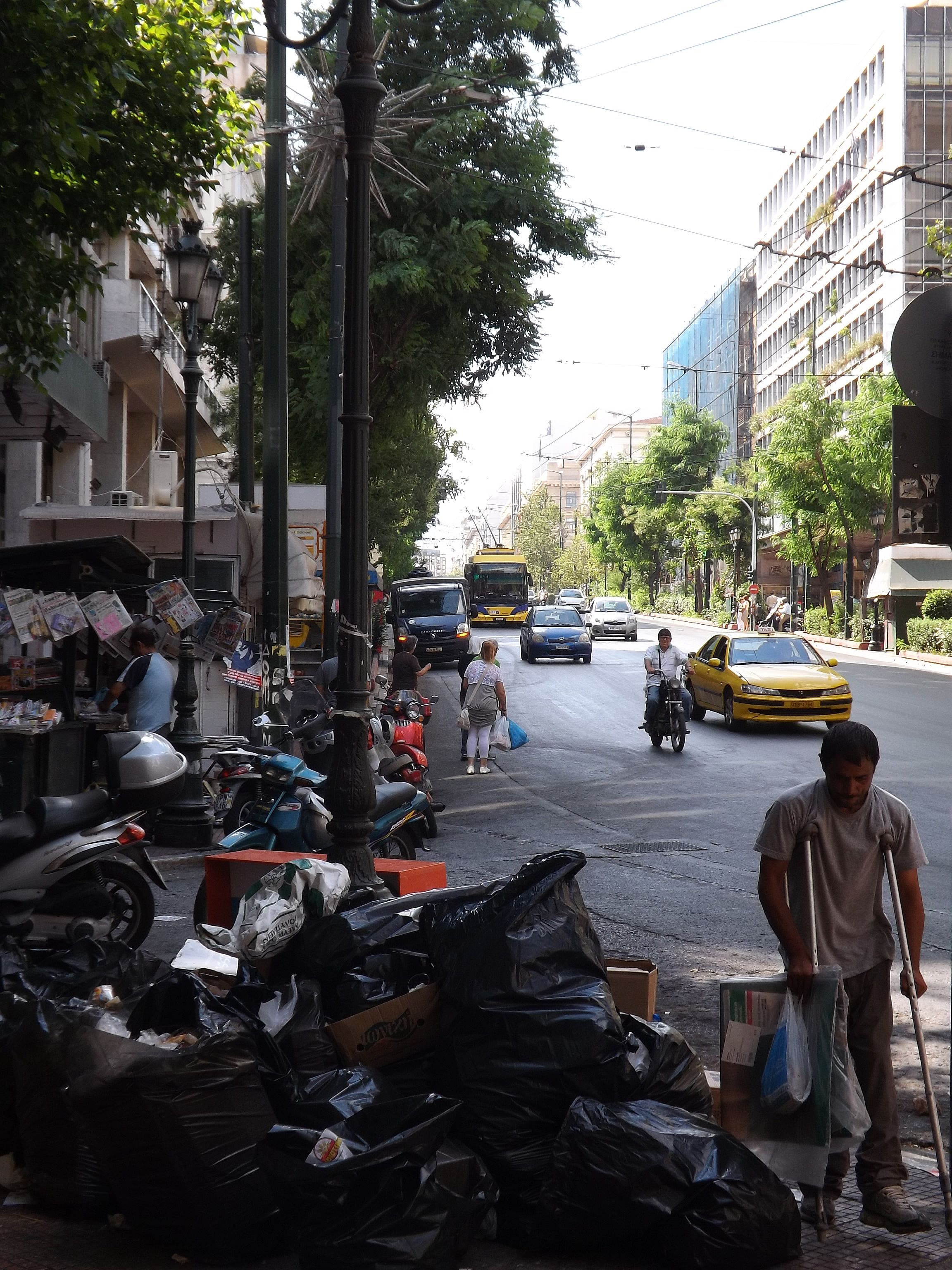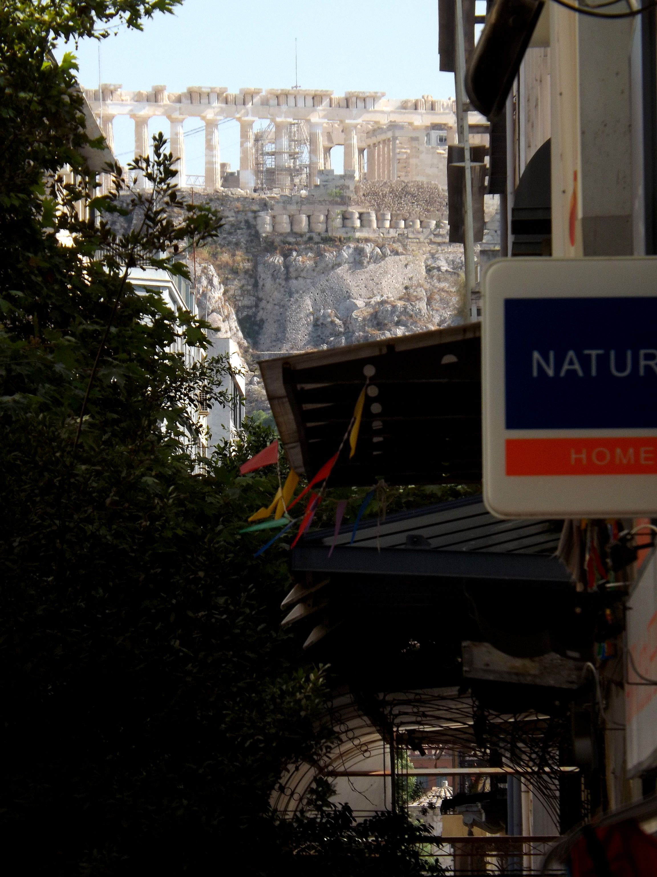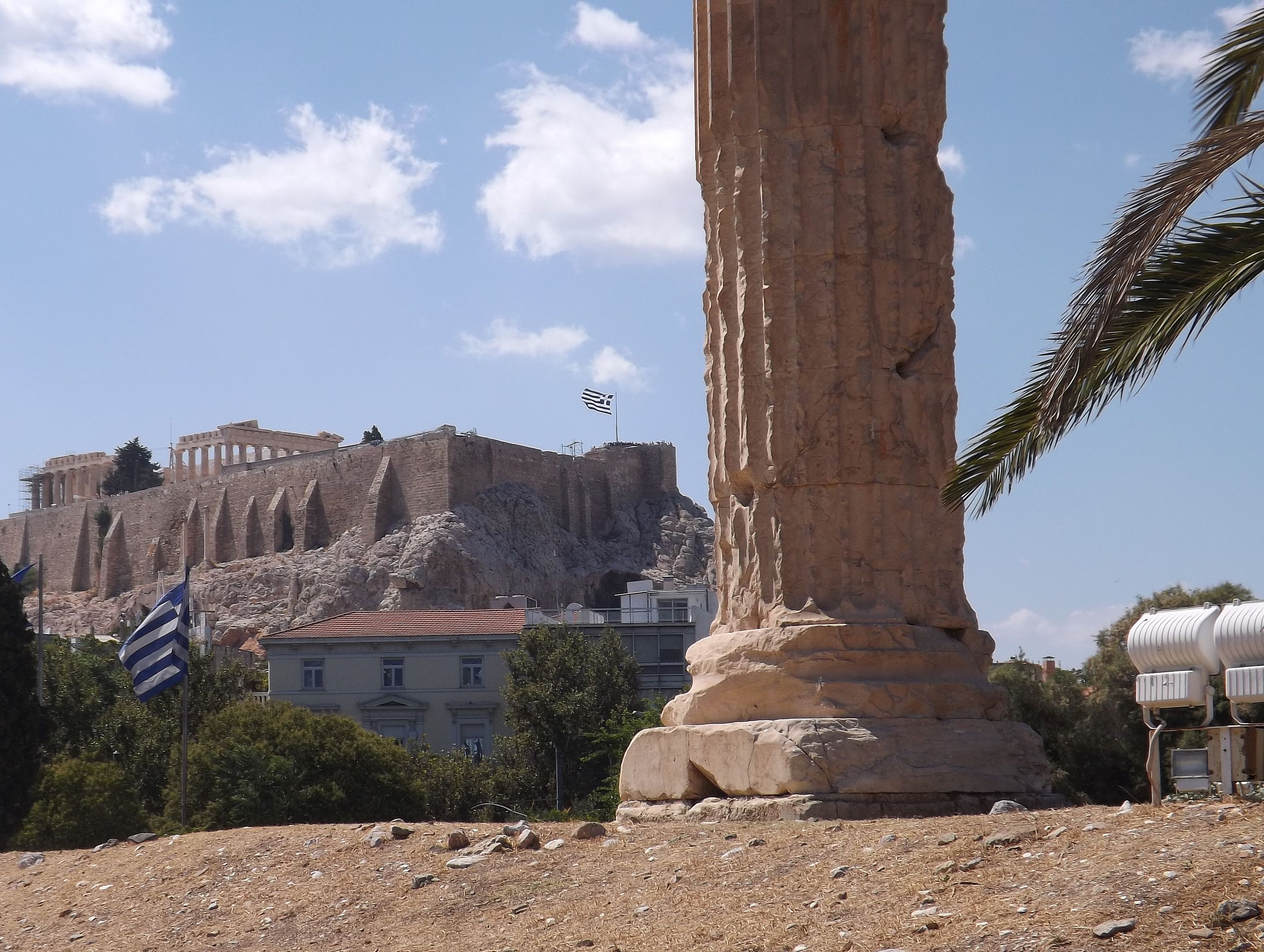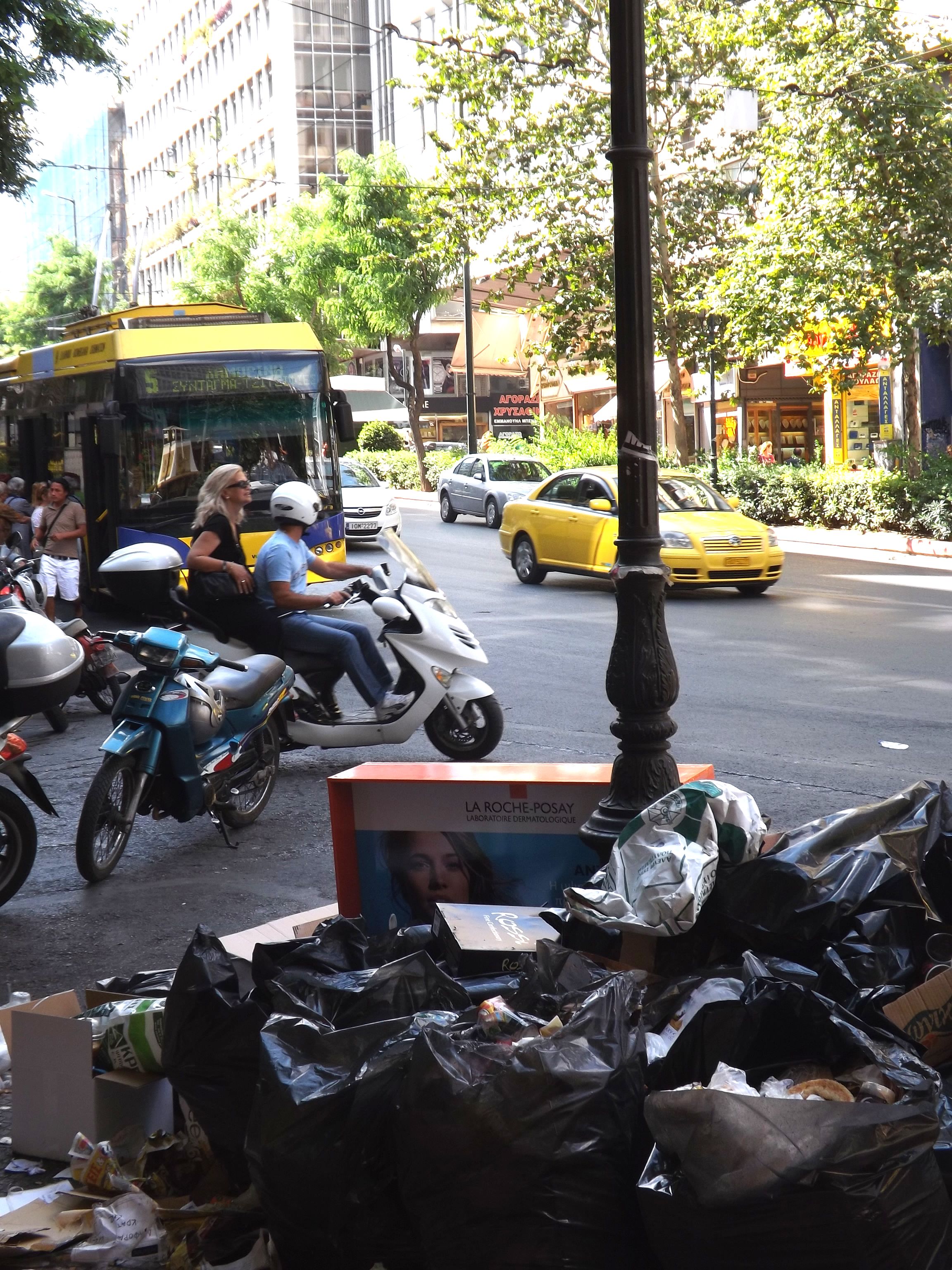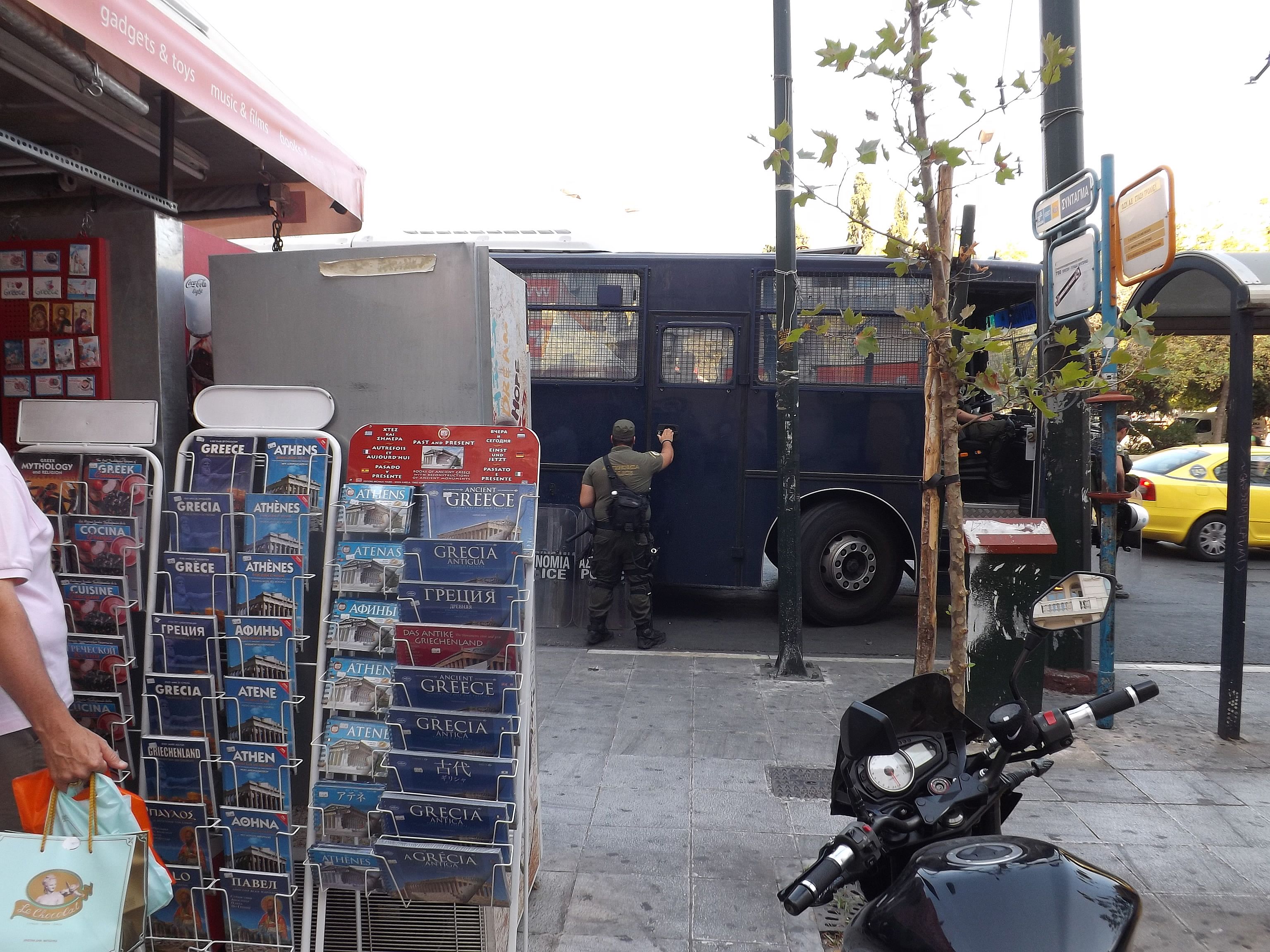 Pas question non plus de faire abstraction d'une situation économique gravissime du pays, qui ne peut pas être sans conséquence pour sa population, y inclus celle vivant dans sa Capitale. On n'a pas été déçu. La protestation est partout, et nombre d'endroits furent visités dans le bourdonnement des hélicoptères de la police et de l'armée. D'autant que l'ennemi européen, le Ministre allemand des Finances, faisait son tour aussi, sans doute pour se convaincre, et surtout la population allemande, que la Grèce vaut encore la peine de tant de peine. Il semble que la visite fut concluante, au prix de plonger la ville en état de siège. Drôle d'ambiance. Les grandes artères, stigmatisées par la situation économique, envahies par les bureaux de voyage bon marché vers les autres pays des Balkans, les marchands d'or et les sacs d'ordures ménagères non collectés - en plein juillet - furent dument arpentées. Heureusement, cette ville a beaucoup à offrir, comme les refuges que sont l'Olympeion d'Hadrien et le Lycabète, l'autre promontoire d'Athènes, vierge celui là de tout monument important, comme un défi lancé à l'Acropole, surchargée de pierres... et de visiteurs. Les autres pages consacrées à Athènes : L'Acropole (novembre 2010) Le Musée Byzantin (2013) Athènes : protestation 2013 |