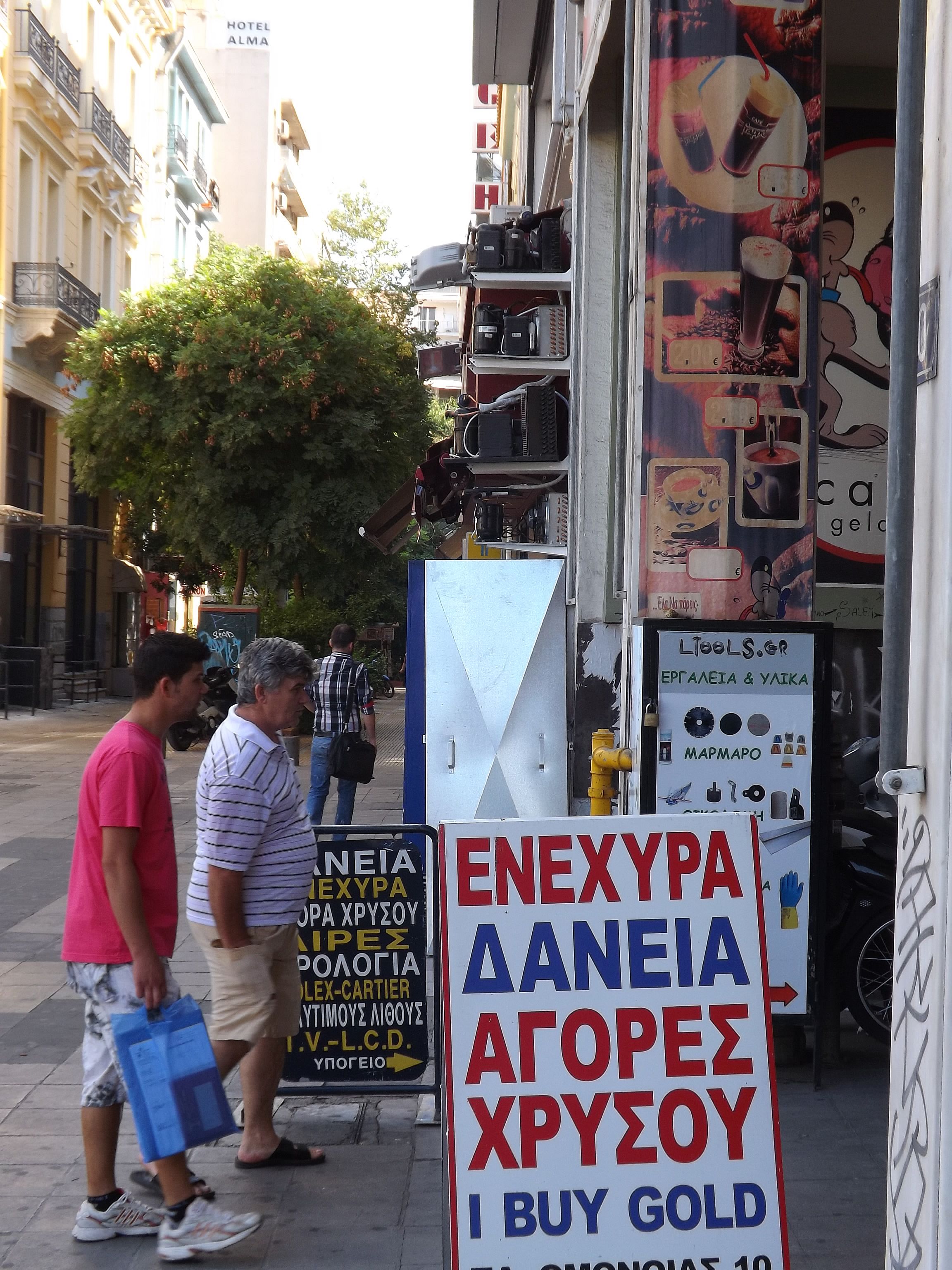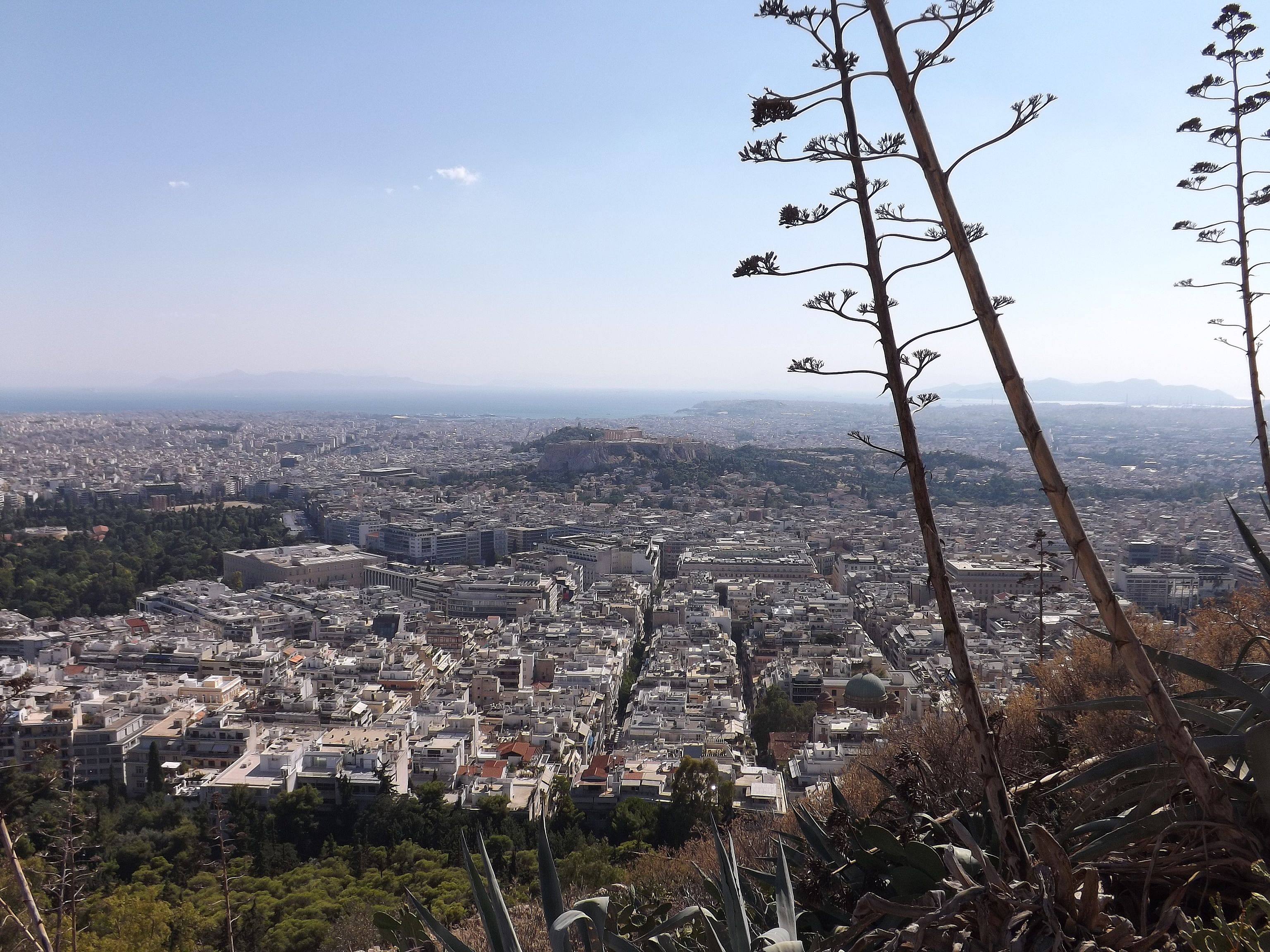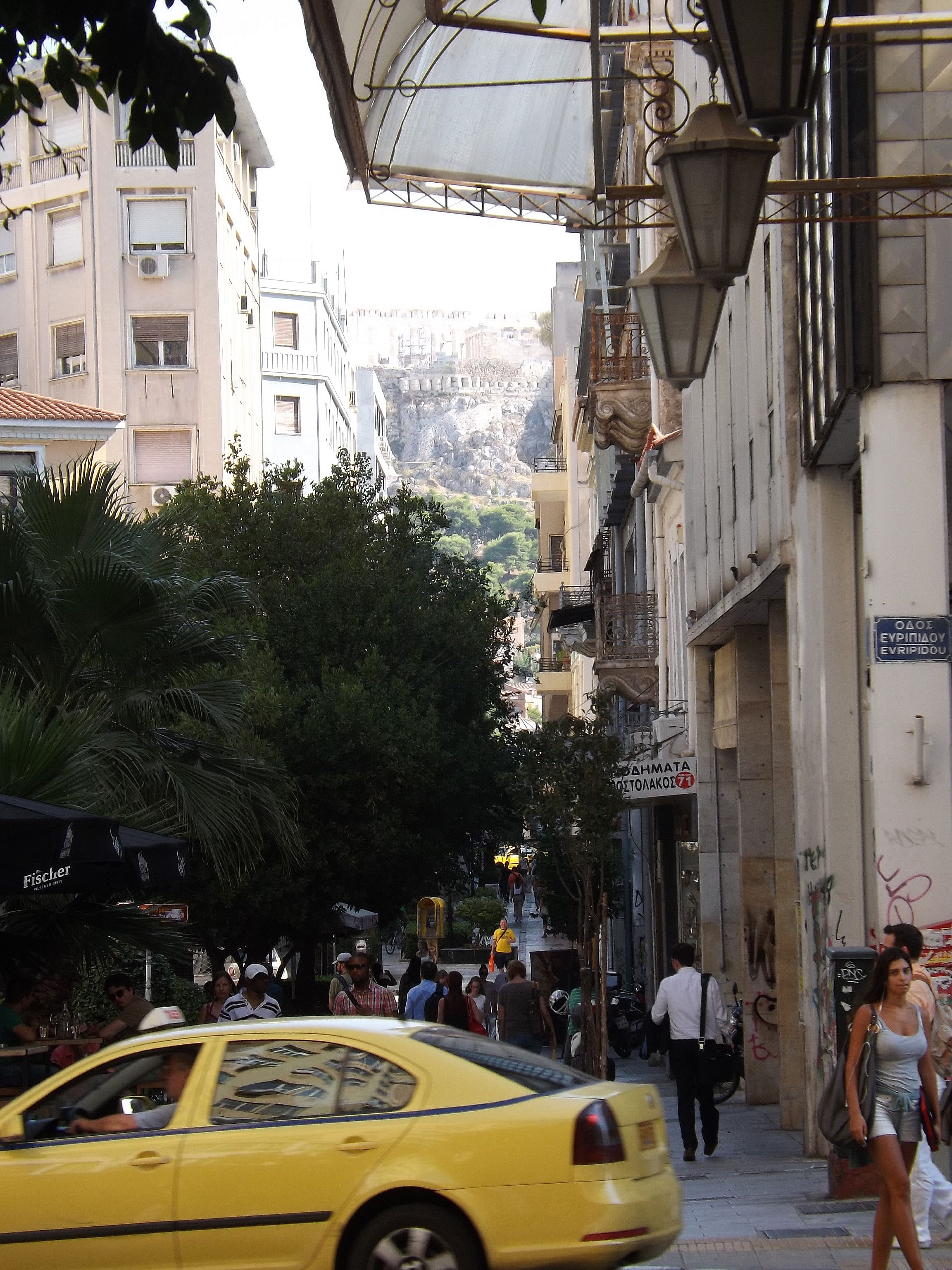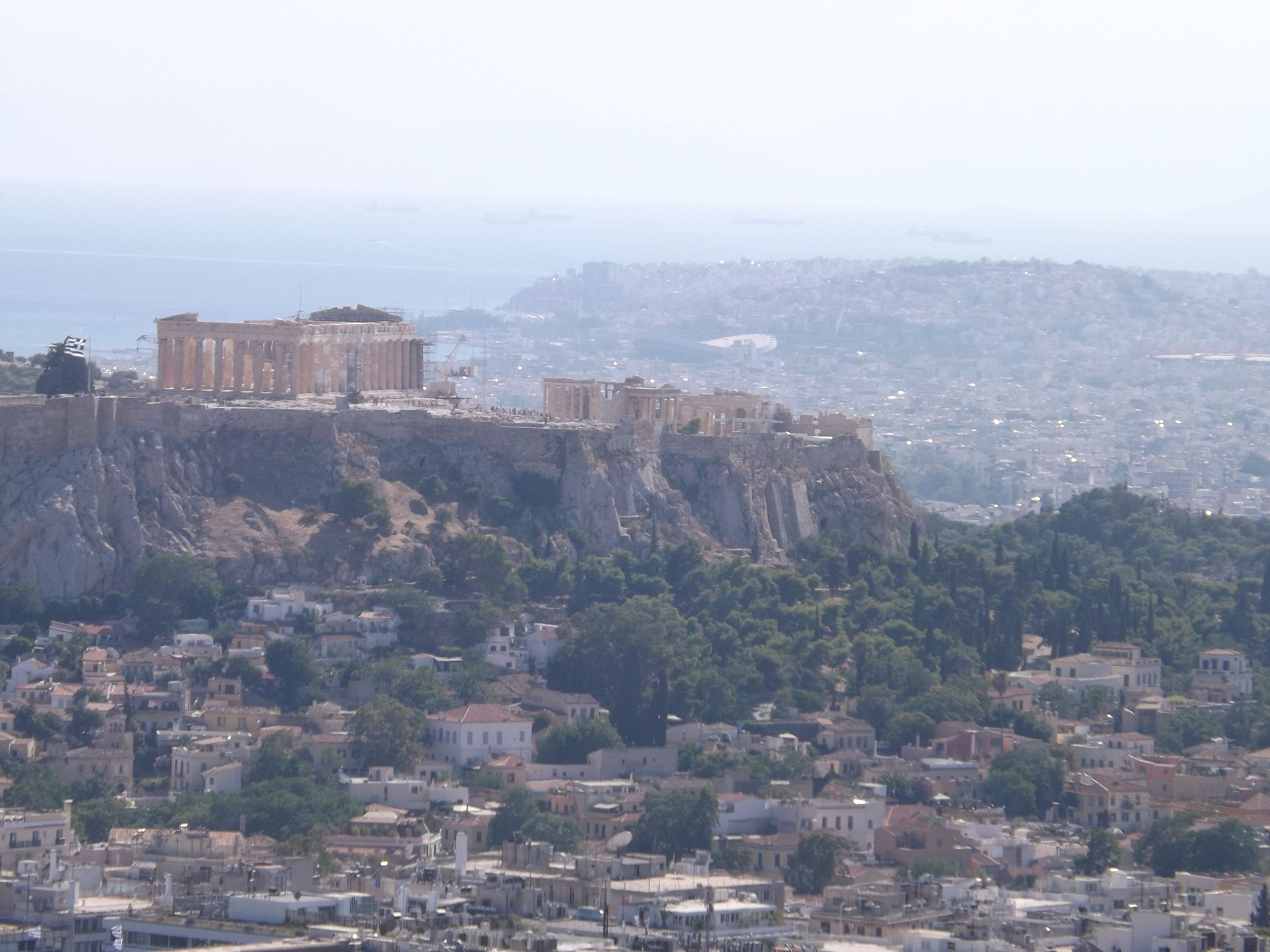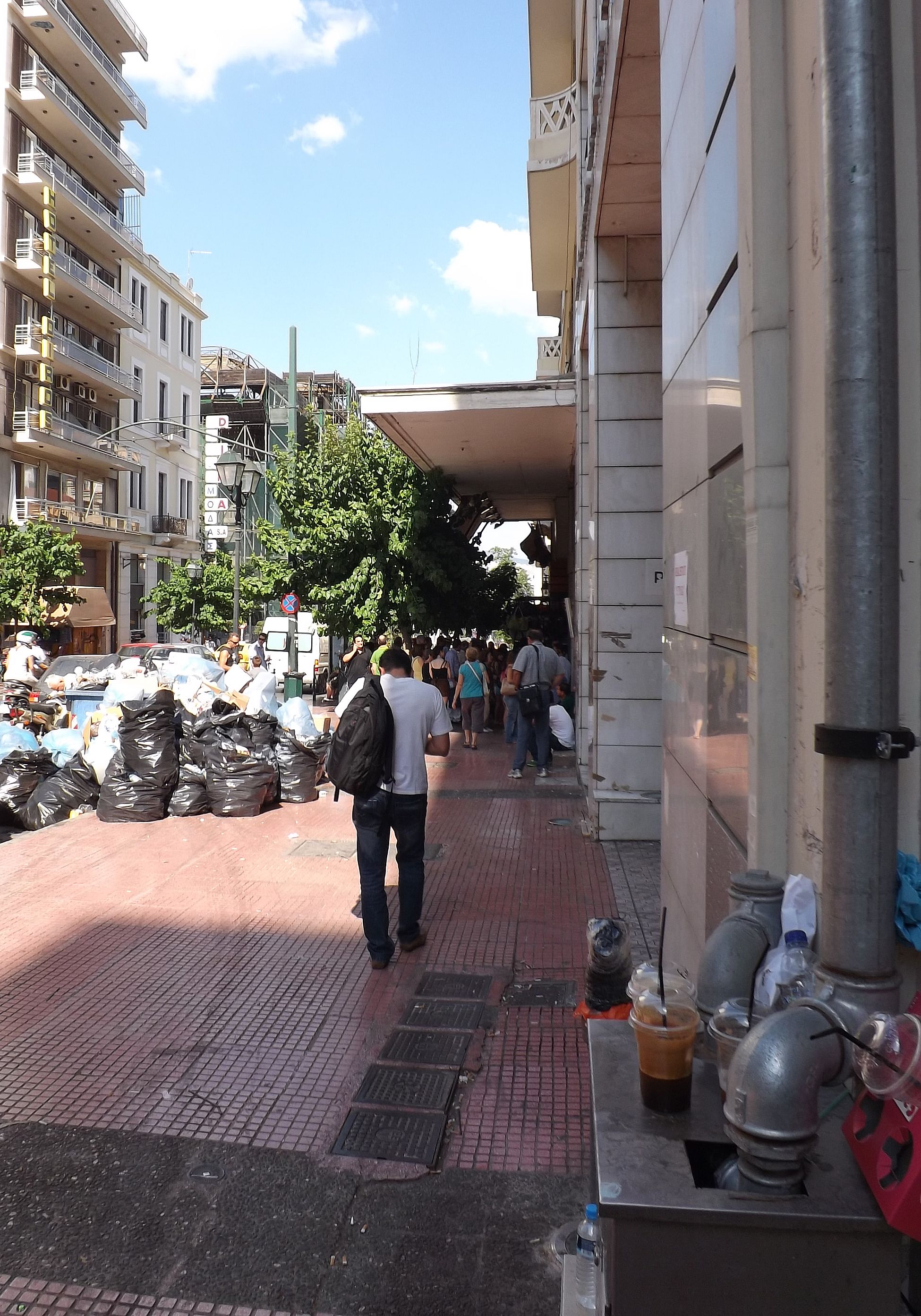 Pas question non plus de faire abstraction d'une situation économique gravissime du pays, qui ne peut pas être sans conséquence pour sa population, y inclus celle vivant dans sa Capitale. On n'a pas été déçu. La protestation est partout, et nombre d'endroits furent visités dans le bourdonnement des hélicoptères de la police et de l'armée. D'autant que l'ennemi européen, le Ministre allemand des Finances, faisait son tour aussi, sans doute pour se convaincre, et surtout la population allemande, que la Grèce vaut encore la peine de tant de peine. Il semble que la visite fut concluante, au prix de plonger la ville en état de siège. Drôle d'ambiance. Les grandes artères, stigmatisées par la situation économique, envahies par les bureaux de voyage bon marché vers les autres pays des Balkans, les marchands d'or et les sacs d'ordures ménagères non collectés - en plein juillet - furent dument arpentées. Heureusement, cette ville a beaucoup à offrir, comme les refuges que sont l'Olympeion d'Hadrien et le Lycabète, l'autre promontoire d'Athènes, vierge celui là de tout monument important, comme un défi lancé à l'Acropole, surchargée de pierres... et de visiteurs. Les autres pages consacrées à Athènes : L'Acropole (novembre 2010) Le Musée Byzantin (2013) Athènes : protestation 2013 |