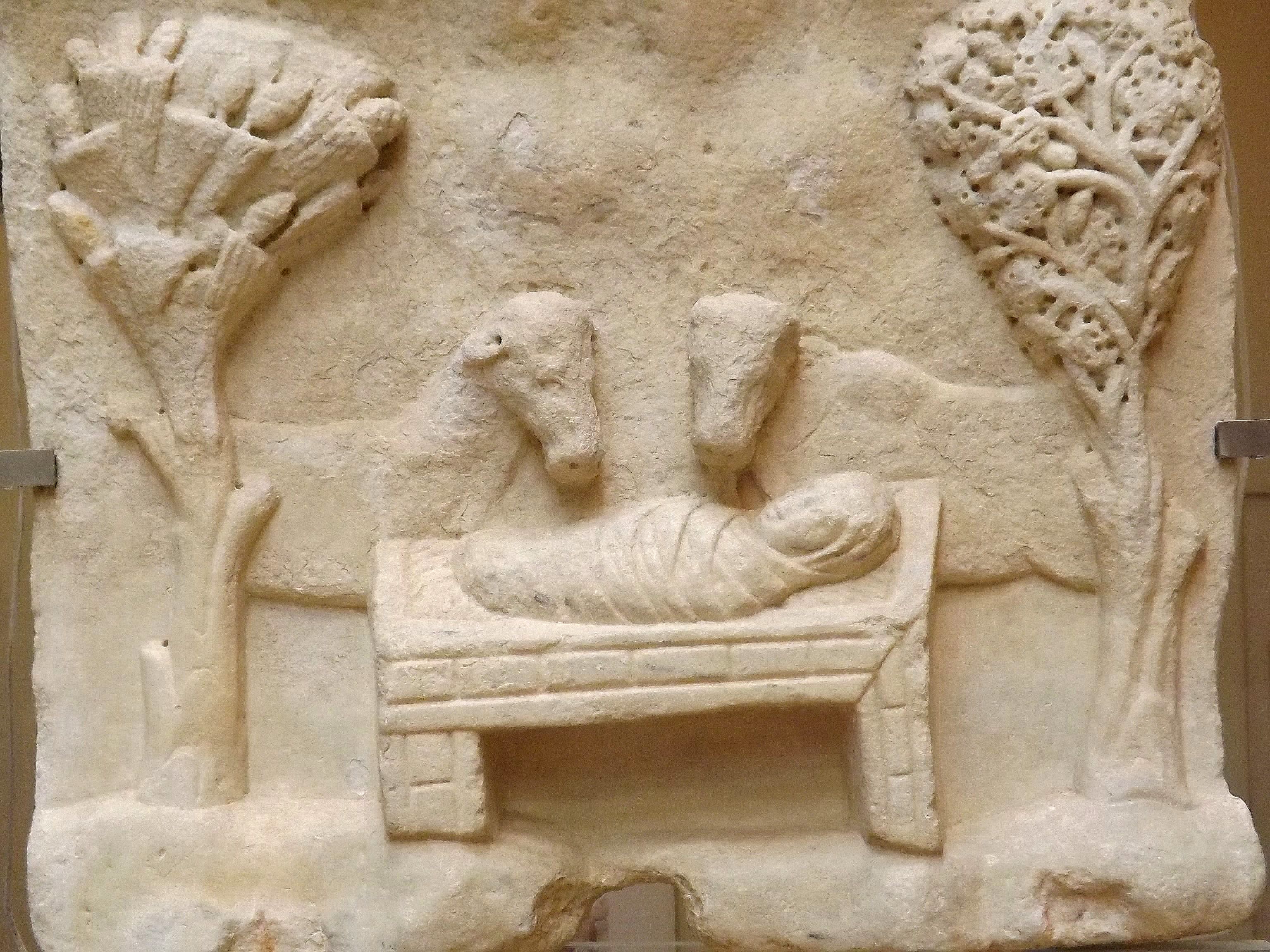 des bas reliefs des tous premiers siècles du christianisme représentant la scène de la nativité telle que nous