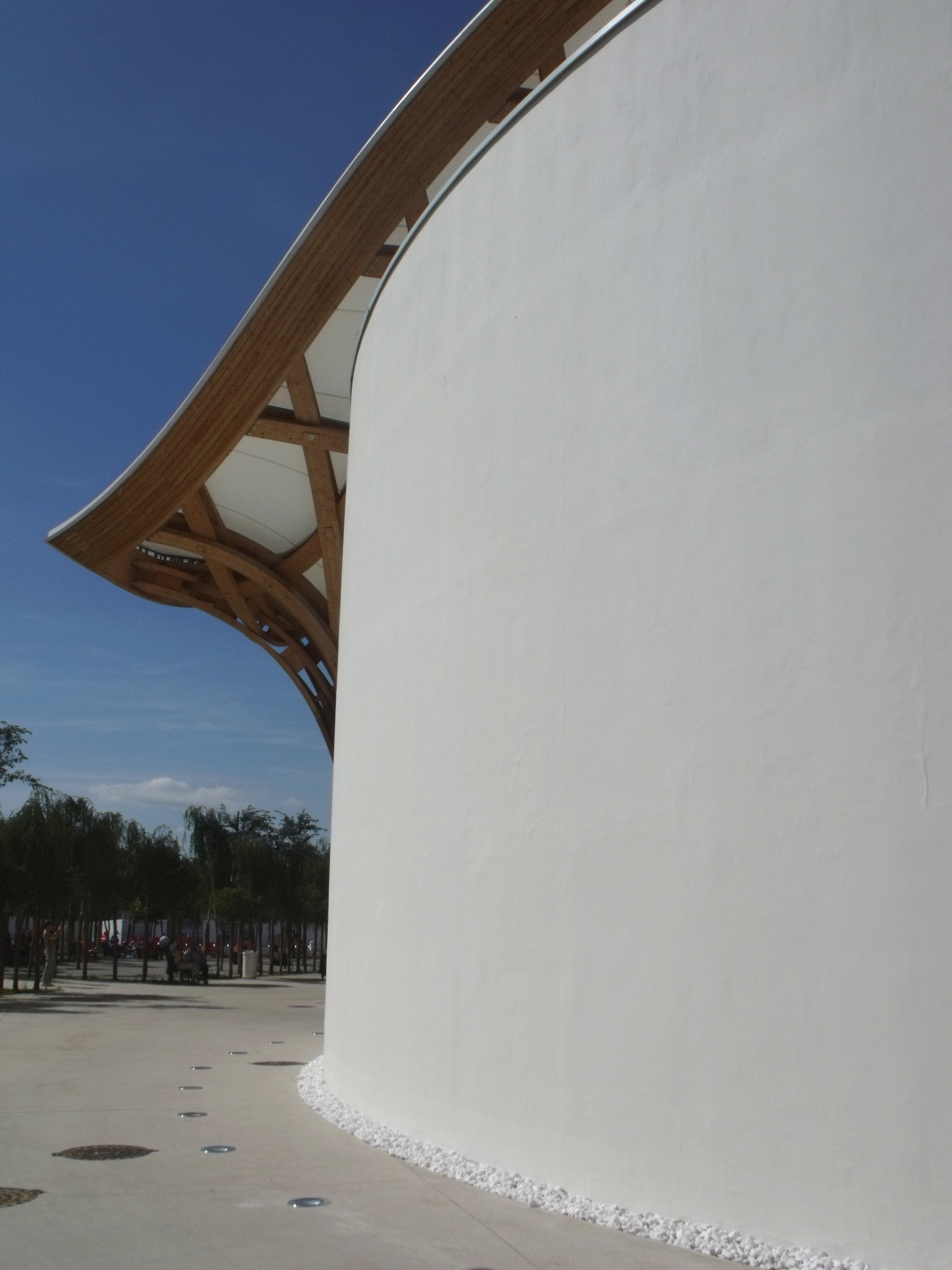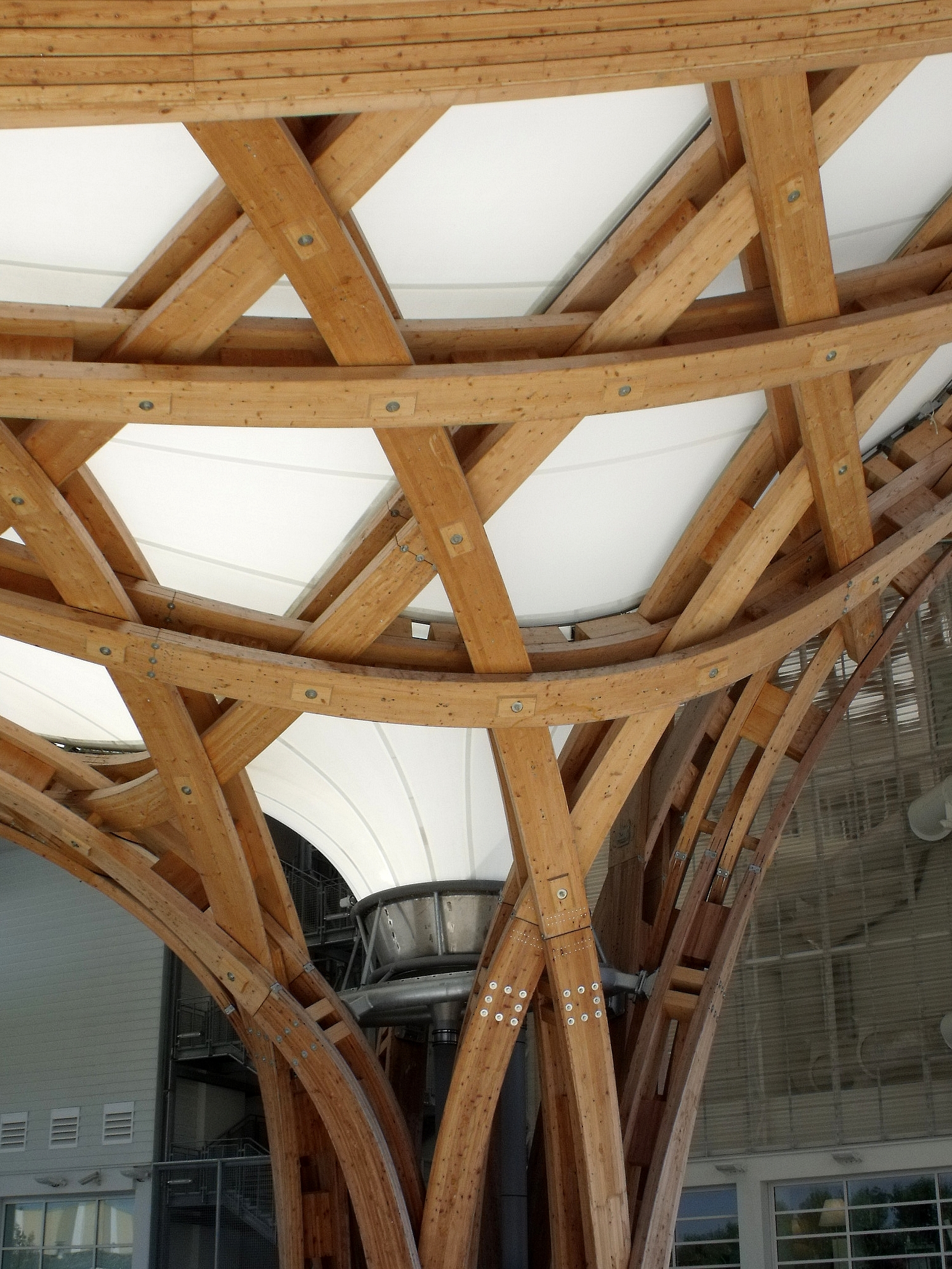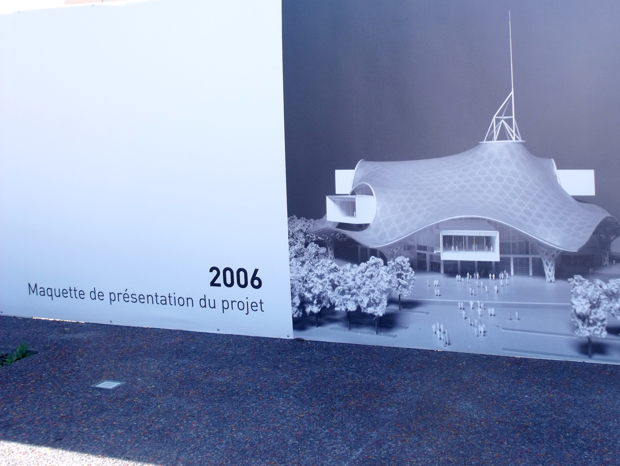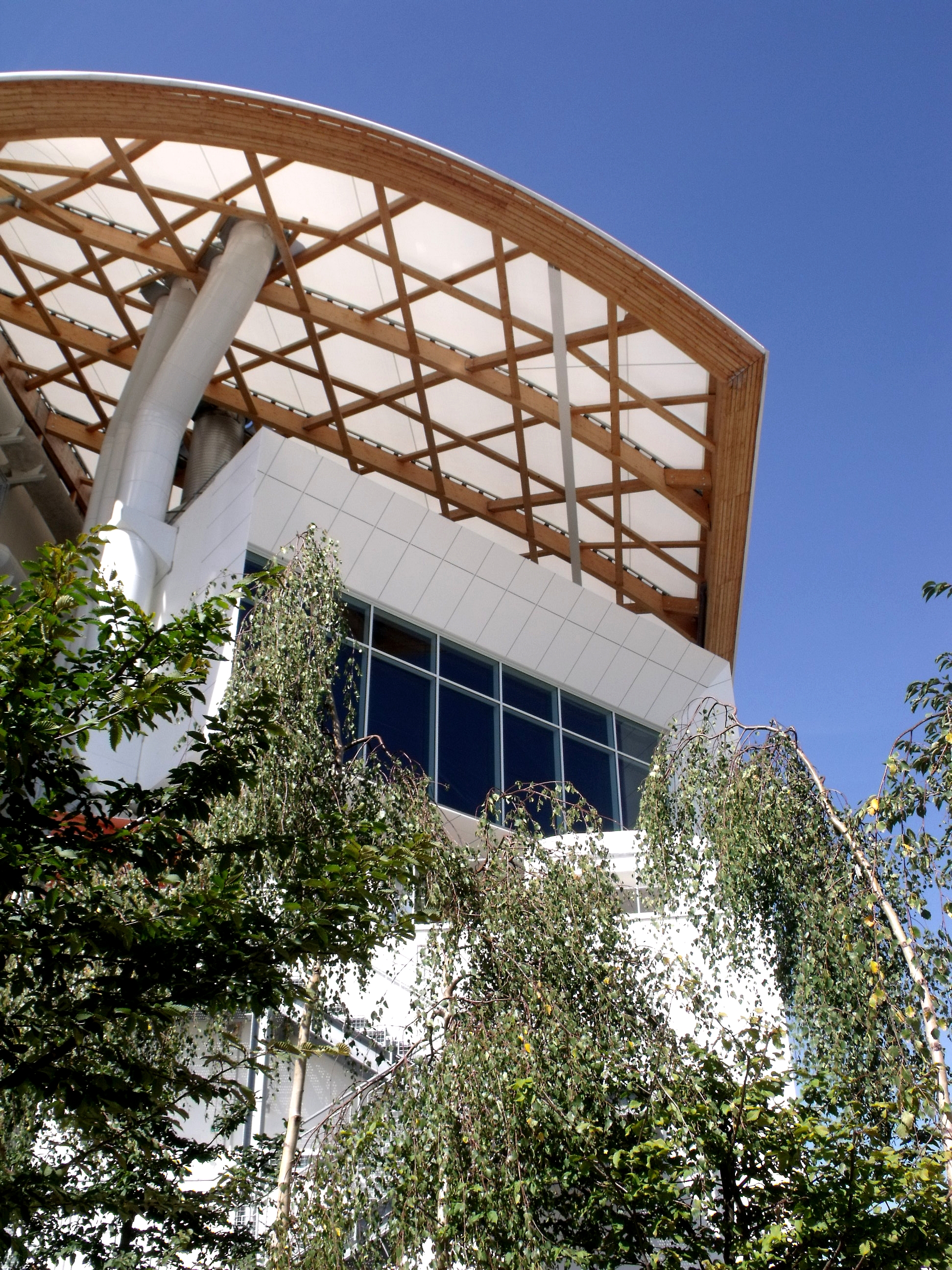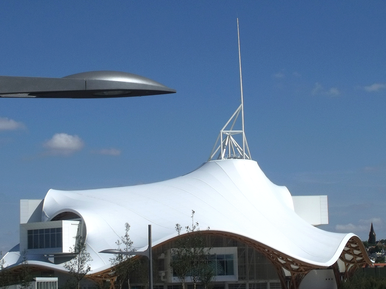 Que j'aime ce bâtiment, que l'on a pu voir que trop rapidement au détour d'une excursion du week-end. Fragile danseuse exposée aux rigueurs lorraines, Il a mal résisté au poids de la neige de cet hiver, paraît-il, et la membrane qui lui sert de toit s'est rompue. En septembre, il avait beaucoup d'allure.