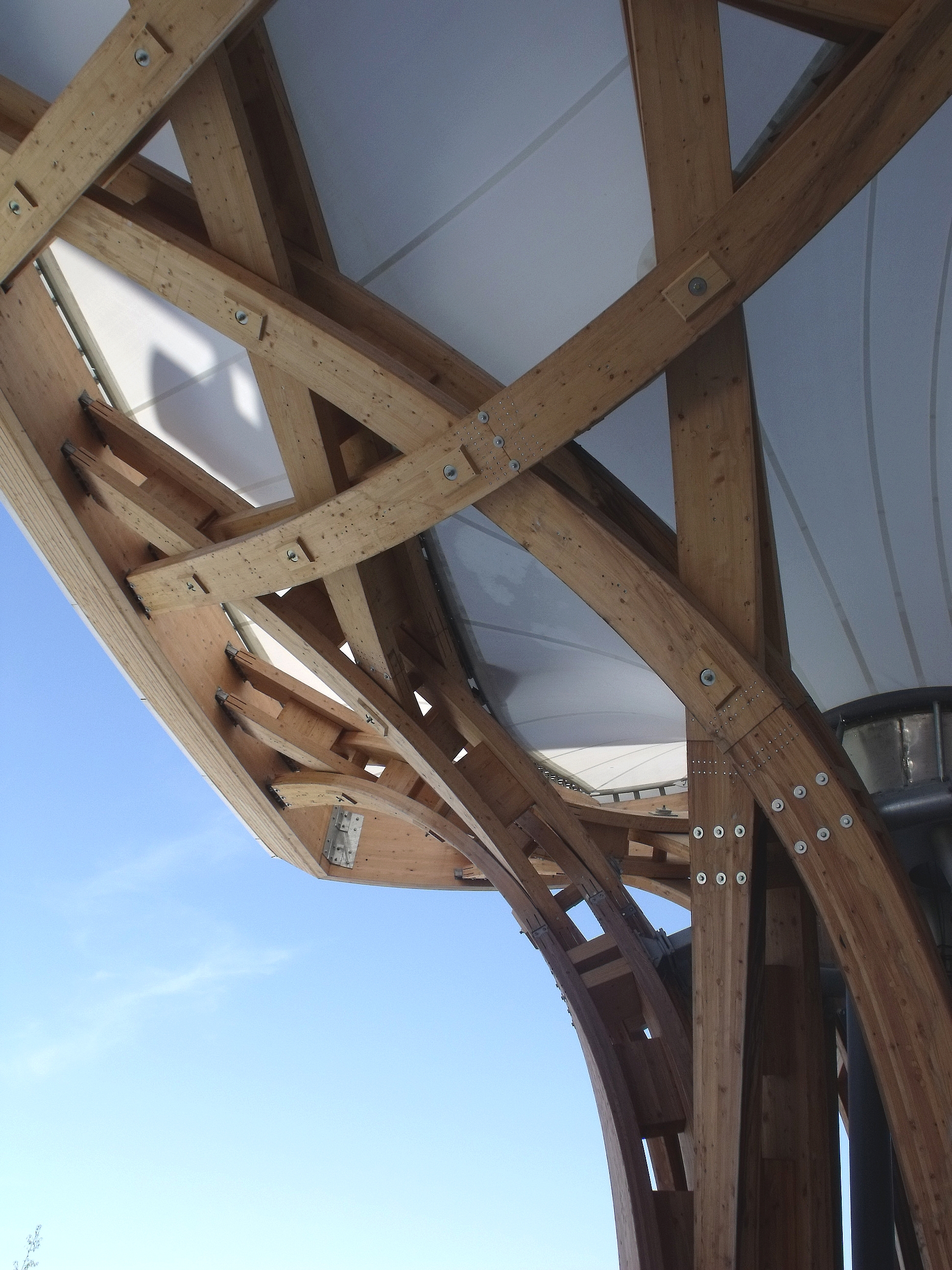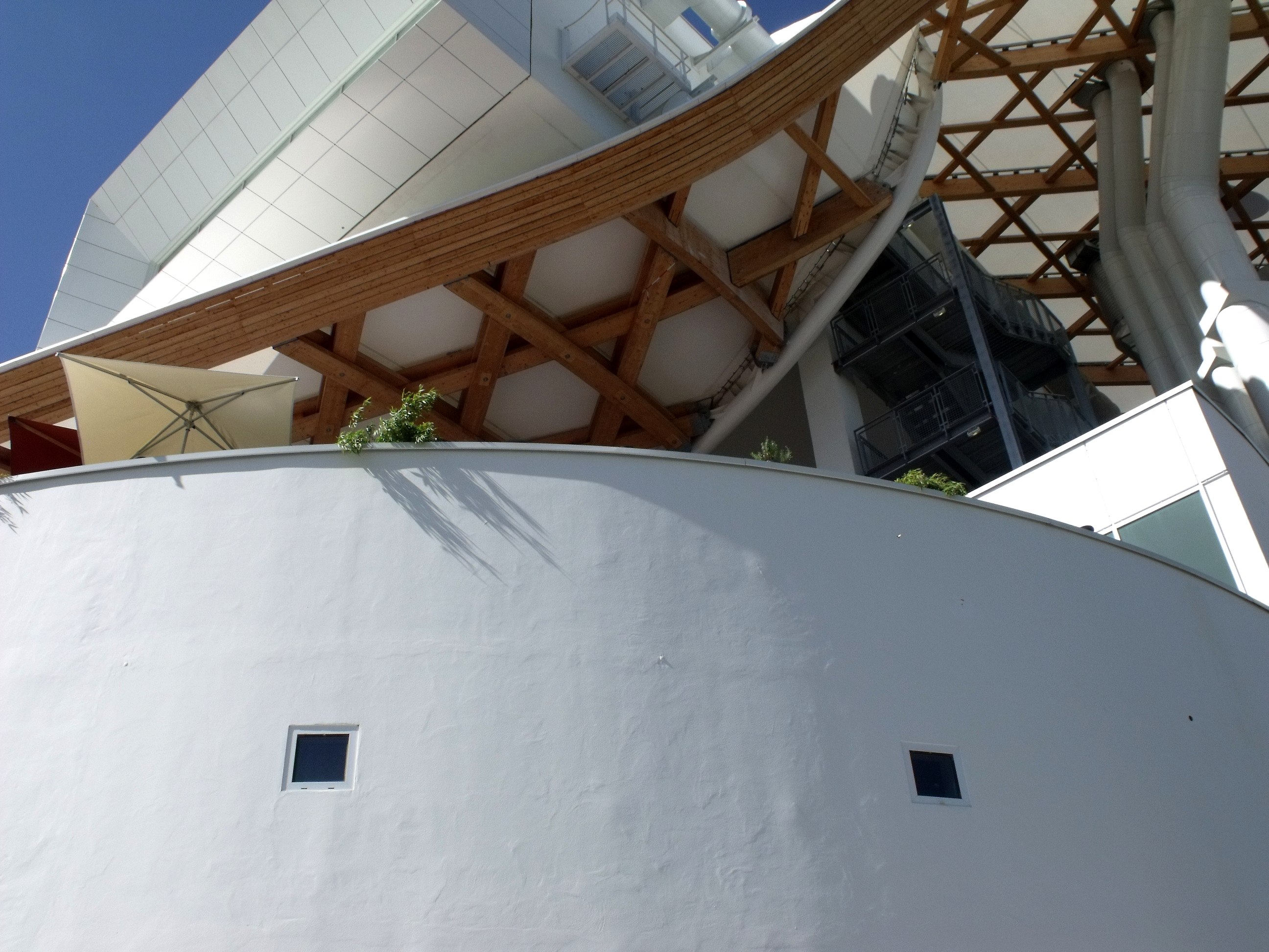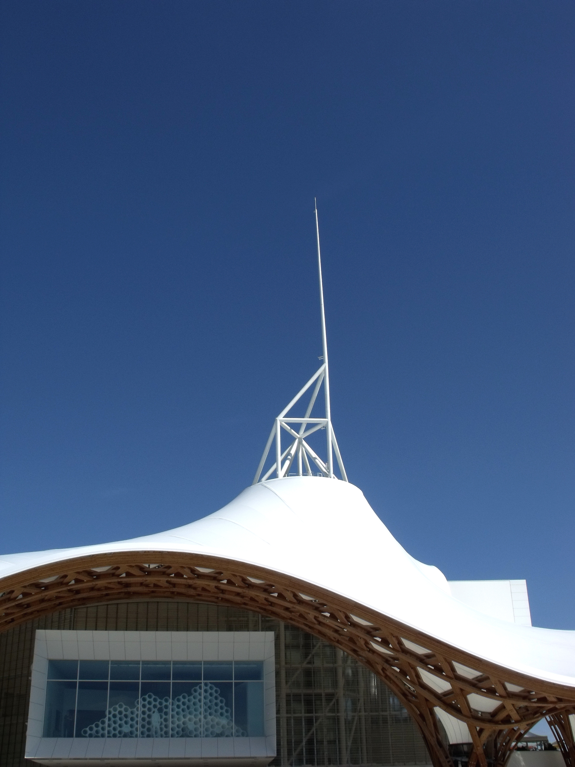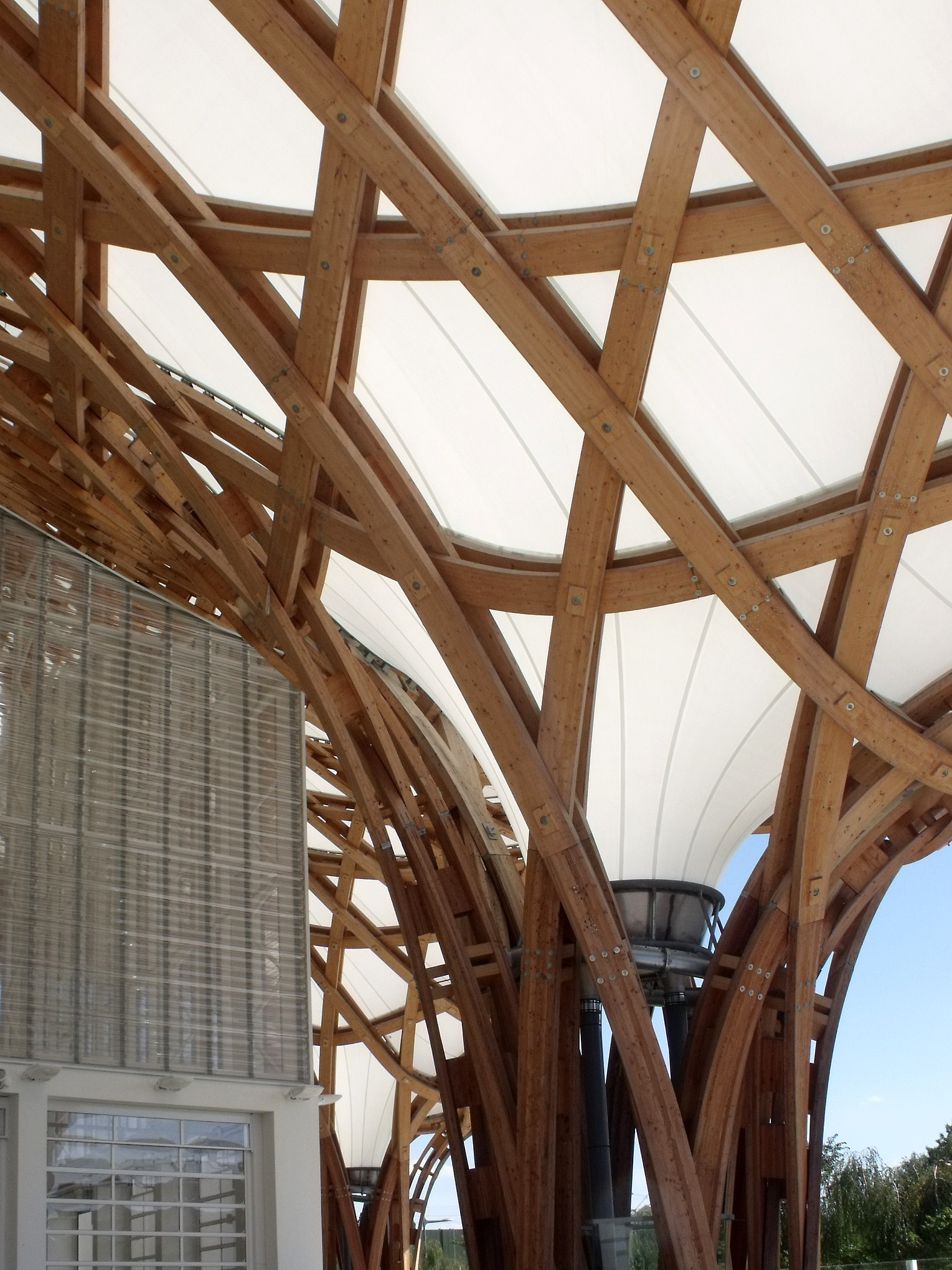 Que j'aime ce bâtiment, que l'on a pu voir que trop rapidement au détour d'une excursion du week-end. Fragile danseuse exposée aux rigueurs lorraines, Il a mal résisté au poids de la neige de cet hiver, paraît-il, et la membrane qui lui sert de toit s'est rompue. En septembre, il avait beaucoup d'allure.