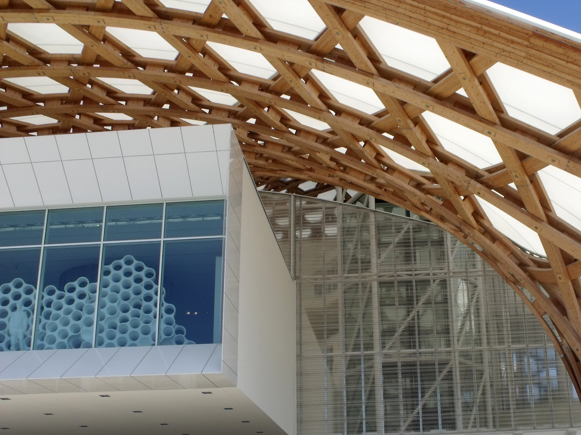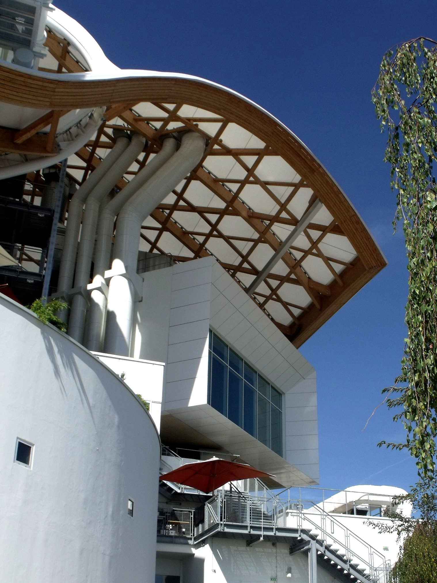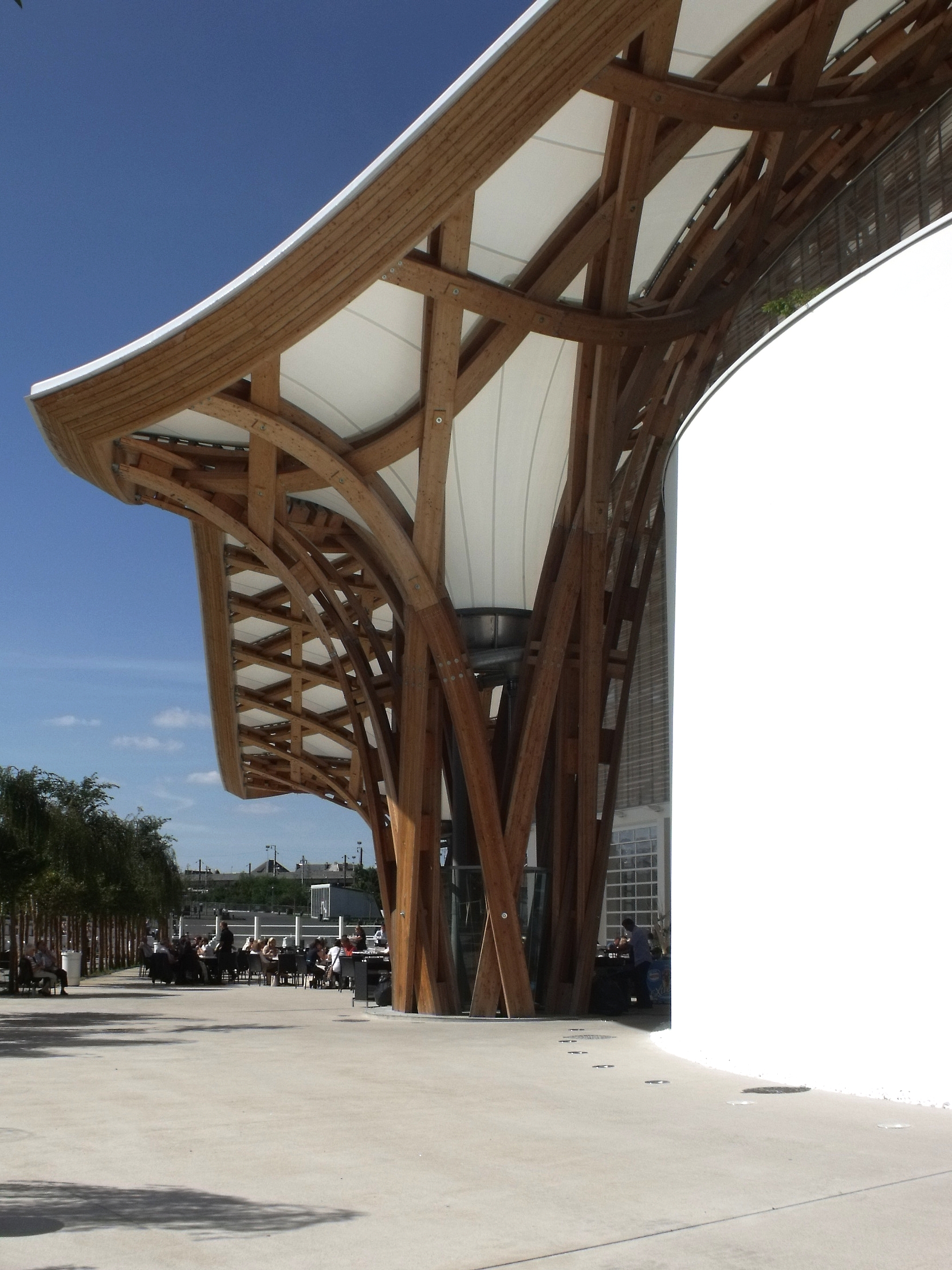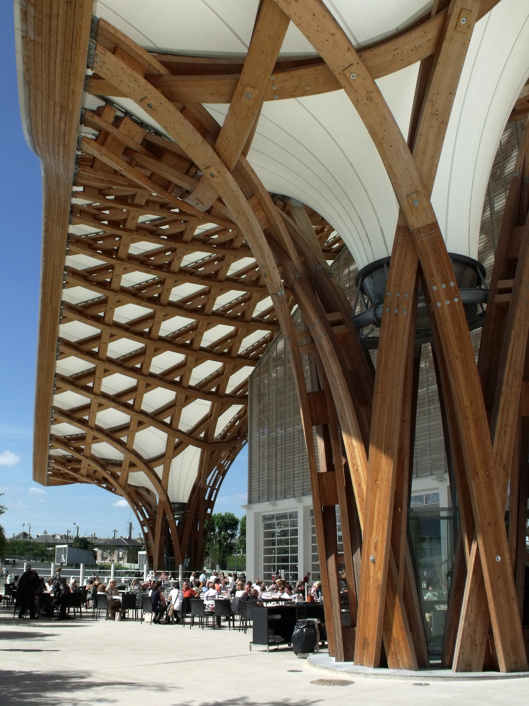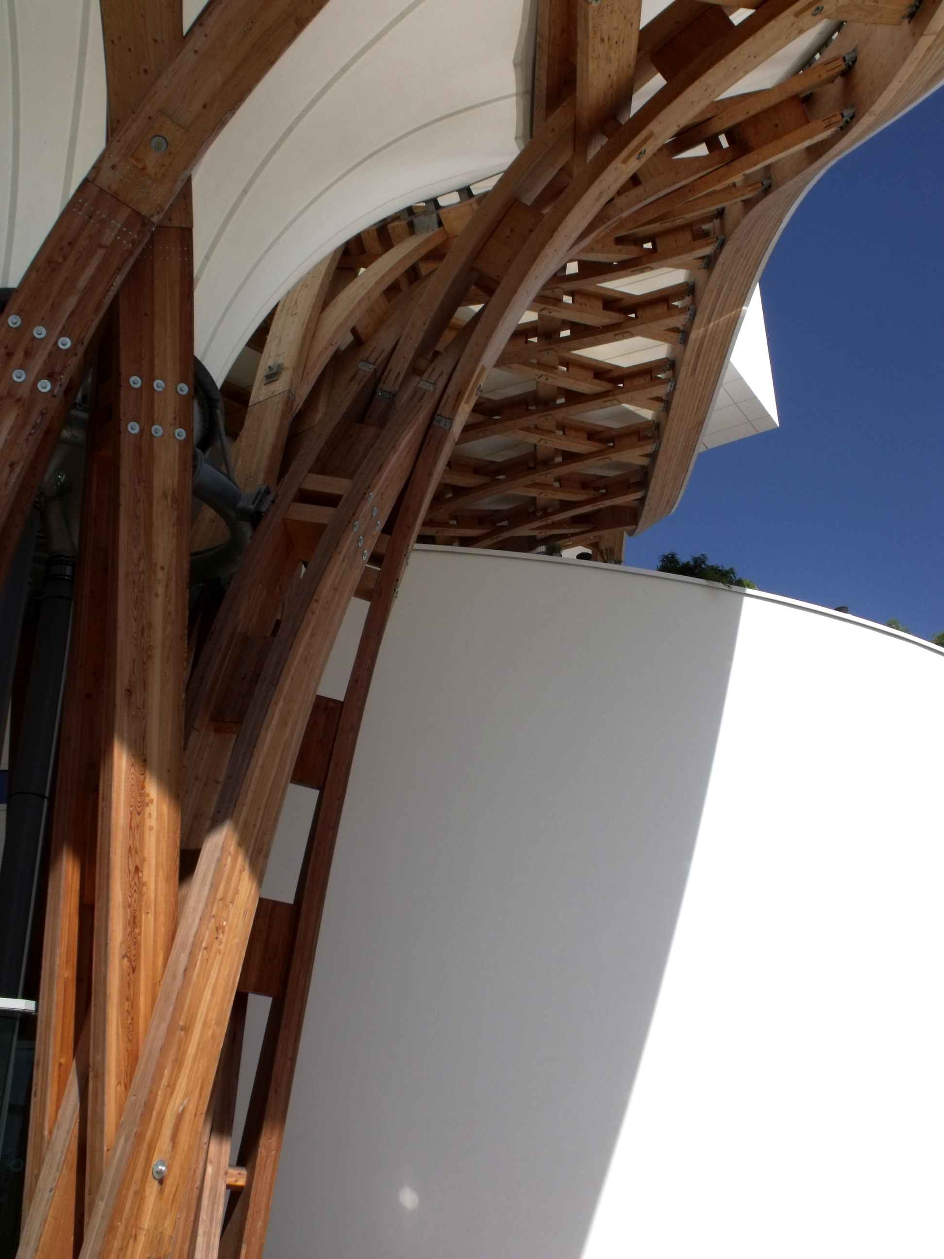 Que j'aime ce bâtiment, que l'on a pu voir que trop rapidement au détour d'une excursion du week-end. Fragile danseuse exposée aux rigueurs lorraines, Il a mal résisté au poids de la neige de cet hiver, paraît-il, et la membrane qui lui sert de toit s'est rompue. En septembre, il avait beaucoup d'allure.
