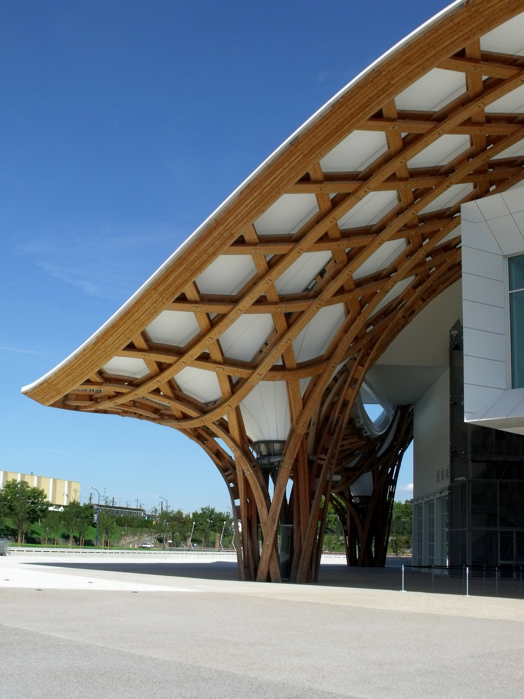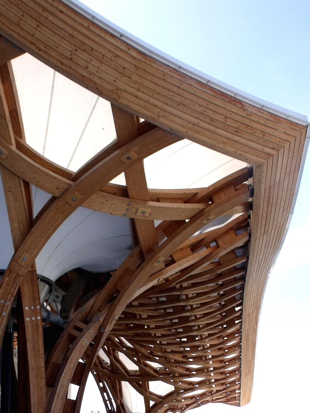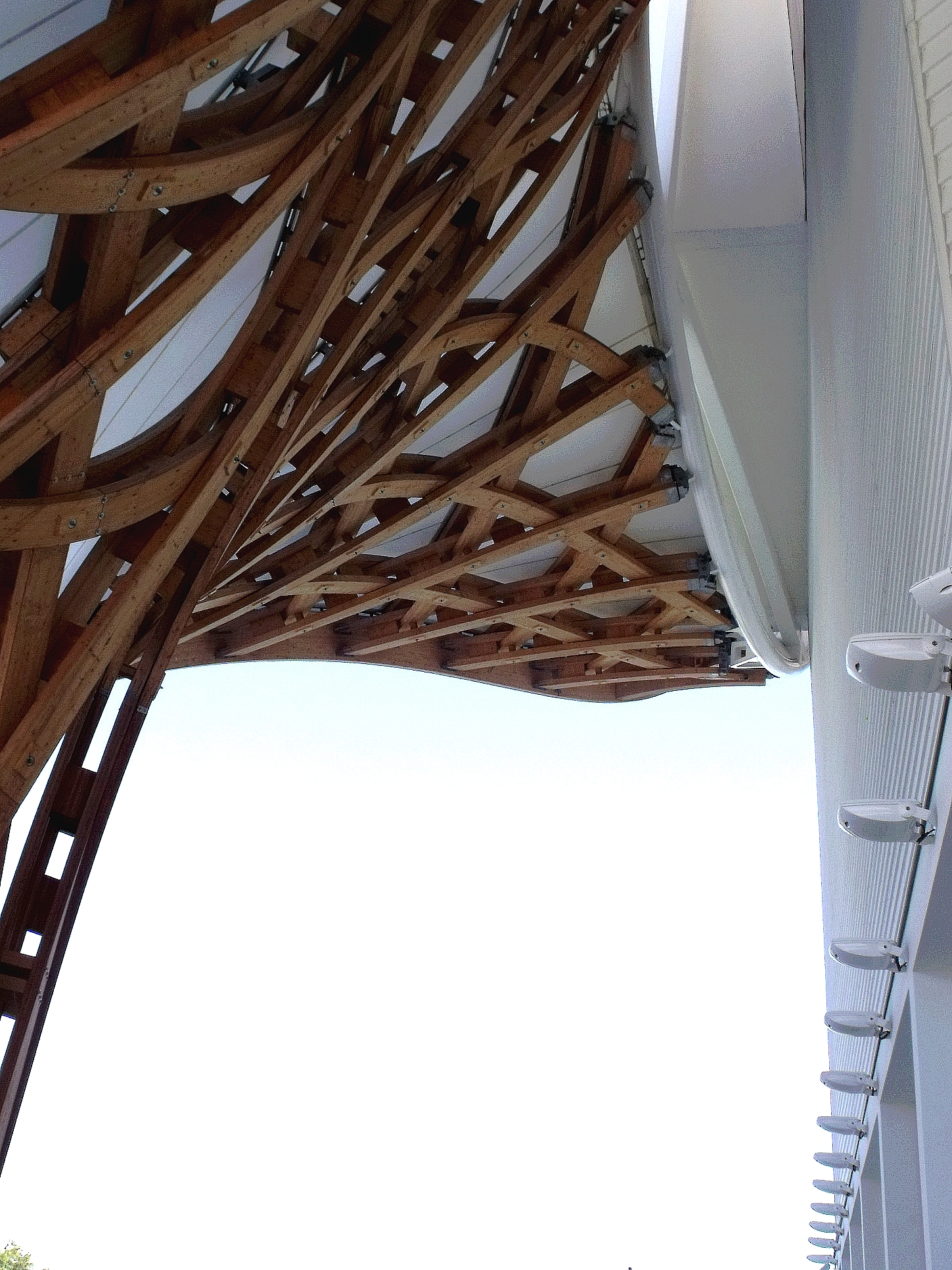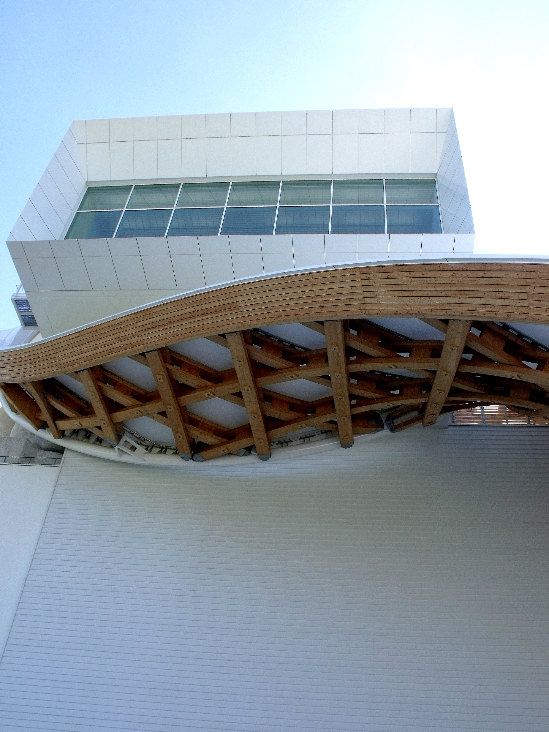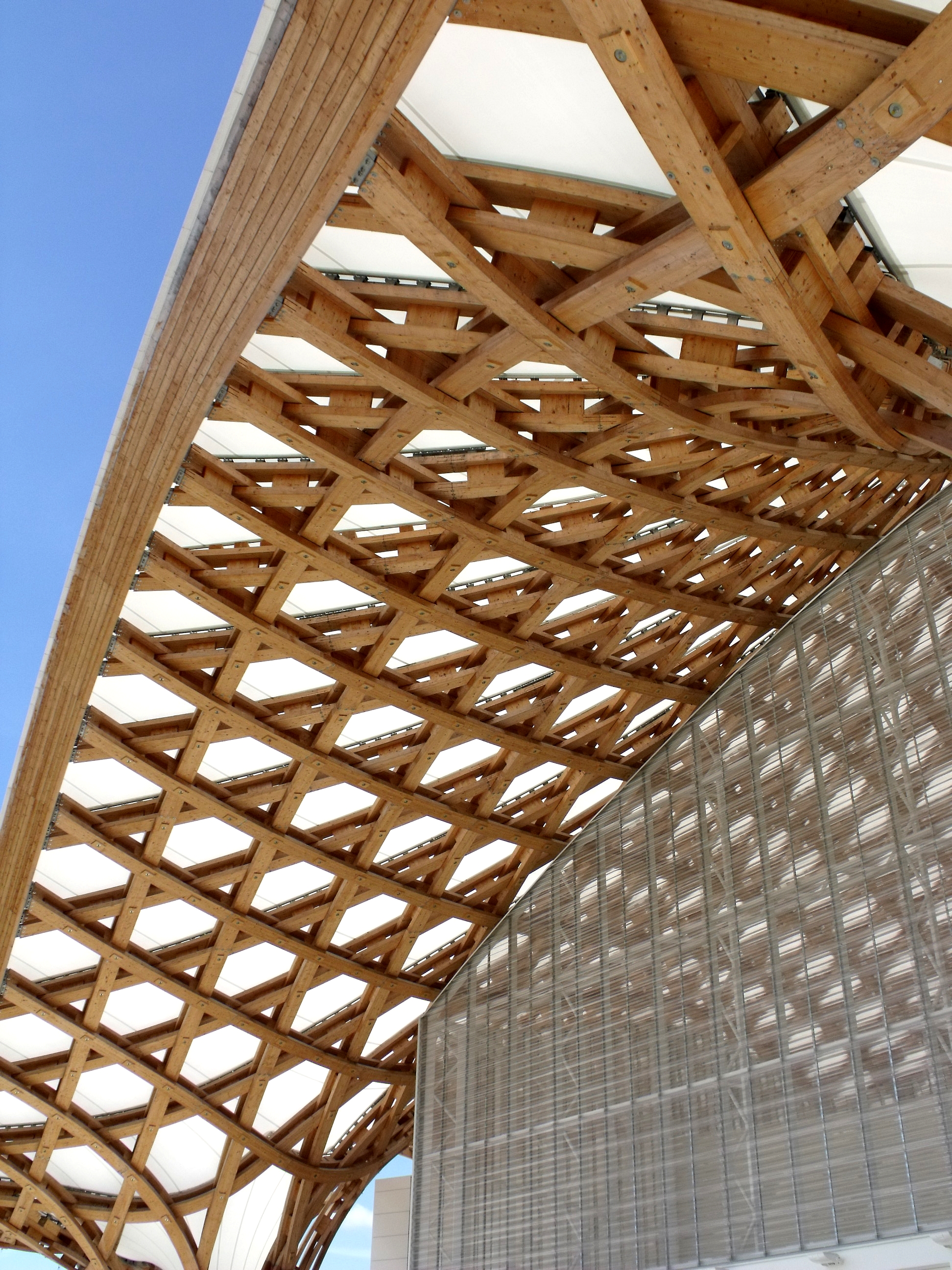 Que j'aime ce bâtiment, que l'on a pu voir que trop rapidement au détour d'une excursion du week-end. Fragile danseuse exposée aux rigueurs lorraines, Il a mal résisté au poids de la neige de cet hiver, paraît-il, et la membrane qui lui sert de toit s'est rompue. En septembre, il avait beaucoup d'allure.