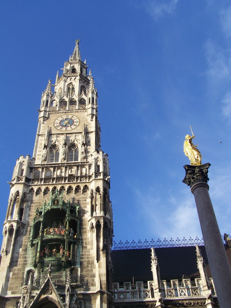 C'est peu de dire que la Marienplatz est le coeur vivant de Munich : toute la vieille ville s'organise à partir de cet espace millénaire, animé trois fois par jour par le carillon et les automates du nouvel hôtel de ville.